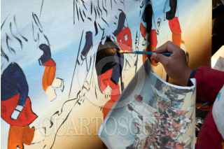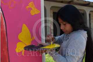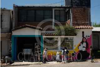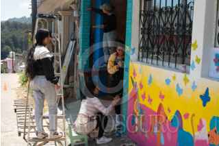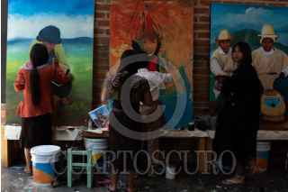 SAN JUAN CHAMULA, CHIAPAS, 30ABRIL2024.- El Centro Cultural ArTex ubicado en la cabecera municipal continúa con las clases de pintura dirigidas a niños, niñas y adolescentes. Como parte de los nuevos proyectos del fundador Tex López; los y las participantes están realizando murales en las calles de la zona y aprenden a pintar en lienzos cada vez más grandes. FOTO: ISABEL MATEOS/CUARTOSCURO.COM