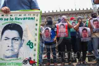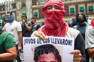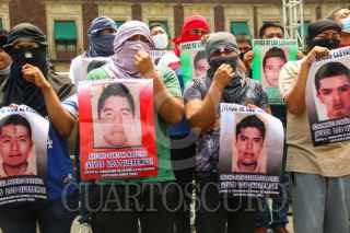 CIUDAD DE MÉXICO. 30ABRIL2024.- Normalistas y familiares de los 43 estudiantes desaparecidos de la Normal de Ayotzinapa, en conferencia de prensa está tarde anunciaron su regreso a sus comunidades, y sostendrán una reunión el 3 de junio con el Presidente Andrés Manuel López Obrador. FOTO: VICTORIA VALTIERRA/CUARTOSCURO.COM