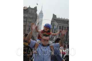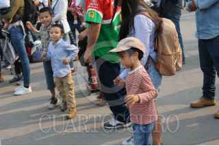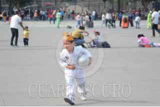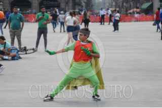 CIUDAD DE MÉXICO, 30ABRIL2024.- Un niño vestido de super héroe camina por el Zócalo. FOTO: DANIEL AUGUSTO /CUARTOSCURO.COM