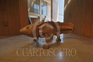 CIUDAD DE MÉXICO, 30ABRIL2024.- El Museo Yancuic, recinto perteneciente a la Secretaría de Cultura de la Ciudad de México dedicado al medioambiente y al cambio climático ubicado al oriente de la capital, recibió dos nuevas esculturas monumentales de un venado cola blanca y un lobo mexicano, denominadas “Guardianes del Yancuic”, que representan a las especies endémicas en peligro de extinción, las cuales fueron elaboradas en el taller de plástica “El Volador”. En su visita al recinto, la secretaria de Cultura de la Ciudad de México, Claudia Curiel de Icaza, explicó que las piezas monumentales recién llegadas sirven para sensibilizar sobre el reto de preservación de estas especies. FOTO: SECRETARÍA DE CULTURA/CUARTOSCURO.COM