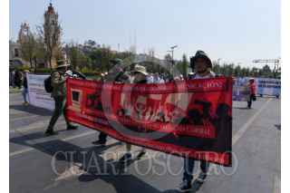TOLUCA, ESTADO DE MÉXICO, 01MAYO2024.- Integrantes de sindicatos de educación, salud, telefonistas, reporteros, marcharon este 01 de Mayo Día del Trabajo en las calles de Toluca en la lucha por mejoras laborales, aumento de salarios así como la reducción de la jornada laboral a 40 horas semanales, las protestas terminaron frente q Palacio de Gobierno. FOTO: CRISANTA ESPINOSA AGUILAR /CUARTOSCURO.COM