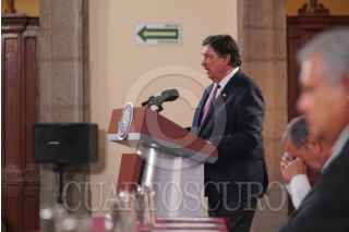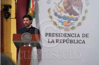 CIUDAD DE MÉXICO, 01MAYO2024.- Marath Baruch Bolaños, secretario del Trabajo, durante la ceremonia por el Día el Trabajo que convocó a decenas de líderes sindicales. FOTO: PRESIDENCIA/CUARTOSCURO.COM