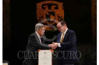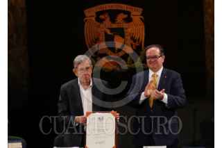 CIUDAD DE MÉXICO, 02MAYO2024.- Javier García Diego Gaytán, Cuauhtémoc Cárdenas Solózarno, Leonardo Lomelí Vanegas encabezaron el homenaje a la obra, acción y pensamiento del Ing. Cuauhtémoc Cárdenas Solórzano por parte de la Universidad Nacional Autónoma de México (UNAM) que se llevó a cabo en el Colegio de San Ildefonso. FOTO: ANDREA MURCIA /CUARTOSCURO.COM