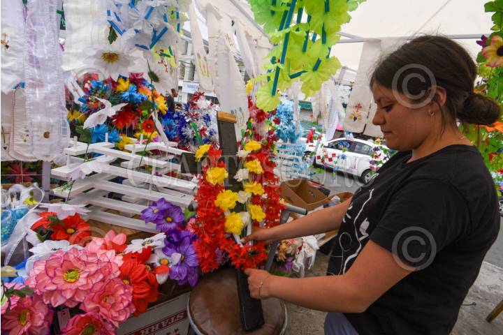 TOLUCA, ESTADO DE MÉXICO, 02MAYO2024.- Para la celebración de la Santa Cruz este 3 de mayo, comerciantes del Mercado 16 de Septiembre y comerciantes de temporada se encuentran ofreciendo cruces de madera, flores naturales, de plástico y papel, así como los mantos para poder adornar las cruces, y poderlas llevar a bendecir a las distintas iglesias de la capital mexiquense, como parte de las tradiciones católicas. FOTO: CRISANTA ESPINOSA AGUILAR /CUARTOSCURO.COM