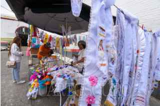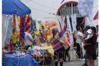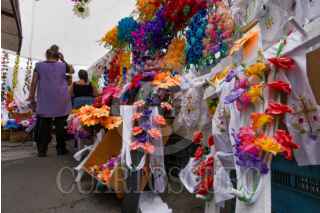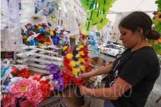 TOLUCA, ESTADO DE MÉXICO, 02MAYO2024.- Para la celebración de la Santa Cruz este 3 de mayo, comerciantes del Mercado 16 de Septiembre y comerciantes de temporada se encuentran ofreciendo cruces de madera, flores naturales, de plástico y papel, así como los mantos para poder adornar las cruces, y poderlas llevar a bendecir a las distintas iglesias de la capital mexiquense, como parte de las tradiciones católicas. FOTO: CRISANTA ESPINOSA AGUILAR /CUARTOSCURO.COM