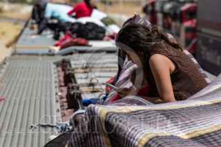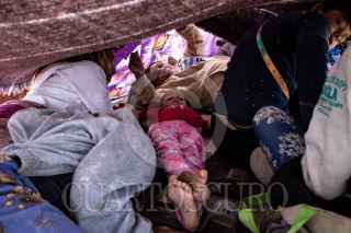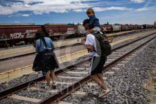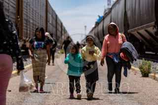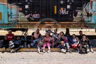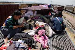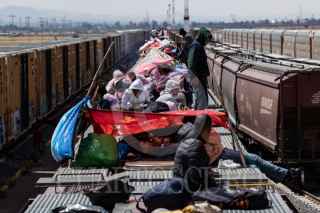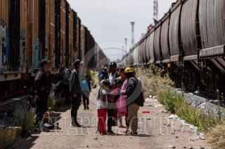 ENRIQUE ESTRADA, ZACATECAS, 02MAYO2024.- Alrededor de mil quinientos migrantes, entre niños, mujeres y hombres de diferentes países como Venezuela, Colombia, Ecuador y Centroamérica; quedaron varados a la altura de la comunidad de Ramón López Velarde. Los migrantes viajaban en dos trenes, el primero montado por aproximadamente 300 personas paró en el lugar desde el medio día de ayer; y esta mañana, muy temprano, llegó otro con arriba de mil personas, por lo que se integraron en uno solo y sin saber cuando continuarían con el recorrido al norte del país. En sus estancia en el lugar, personas de grupos solidarios llevaron alimentos, medicinas y agua; además de que los ejidatarios de la zona abrieron los pozos para que algunos pudieran asearse en la espera. Desde el día de ayer, a la entrada de la zona conurvada, Guadalupe-Zacatecas, se instaló una "unidad de migración" por parte del Instituto Nacional de Migración; esta mañana en ese lugar se intentó bajar a la fuerza las personas que iban montados en La Bestia, aunque lograron permanecer en la misma, varios de ellos fueron golpeados por elementos del INM. FOTO: ADOLFO VLADIMIR /CUARTOSCURO.COM