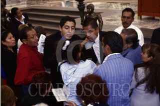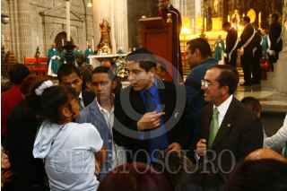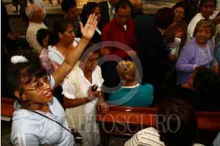 MÉXICO D.F. 22JULIO2007.-Una mujer forcegeo con elementos de seguridad de la catedral al pedir que se retirara, después de haber gritado al cardenal que se proclamara encontra de los hechos ocurridos en Oaxaca, esto al momento de oficiar la misa dominical del cardenal Norberto Rivera. FOTO: CUARTOSCURO.COM
