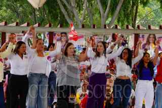 CIUDAD DE MÉXICO, 03MAYO2024.- Xóchitl Gálvez, candidata a la Presidencia de la República por la coalición Fuerza y Corazón por México, Alessandra Rojo de la Vega, candidata por la alcaldía Cuauhtémoc, durante su reunión con vecinos de Tlatelolco. FOTOS: ROGELIO MORALES /CUARTOSCURO.COM