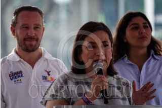 CIUDAD DE MÉXICO, 03MAYO2024.- Xóchitl Gálvez, candidata a la presidencia de la República por la coalición “Con Fuerza y Corazón por México” (PAN-PRI-PRD), y Santiago Taboada, candidato a la jefatura de gobierno de la Ciudad de México por la misma, encabezaron la firma del el Pacto por la Movilidad Sustentable con el que buscarían crear una política entre el gobierno federal y el capitalino para la mejora a todos los tipos de transporte en caso de que ganaran. Reiteraron que no quieren que una tragedia como la de la línea 12 del metro vuelva a ocurrir, así como que los habitantes merecen un transporte digno y seguro para transitar. El evento transcurrió en la explanada de la alcaldía Benito Juárez junto a la estación Parque de los Venados del STC. FOTO: GALO CAÑAS/CUARTOSCURO.COM