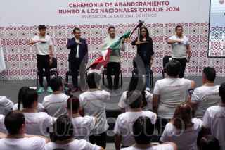 CIUDAD DE MÉXICO, 04MAYO2024.- Martí Batres, jefe de gobierno de la Ciudad de México, en compañía de Julio Pérez Guzmán, director del Instituto del Deporte de la Ciudad de México (INDEPORTE), encabezaron el abanderamiento rumbo a los juegos nacionales CONADE 2024. FOTO: GALO CAÑAS/CUARTOSCURO.COM