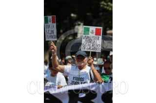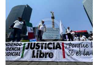 CIUDAD DE MÉXICO, 05MAYO2024.- Trabajadores del Poder Judicial de la Federación realizan una concentración en el Ángel de la independencia de manera pacífica esto con el propósito de defender la independencia de este órgano con el movimiento “Justicia Libre”. FOTO: ANDREA MURCIA /CUARTOSCURO.COM