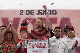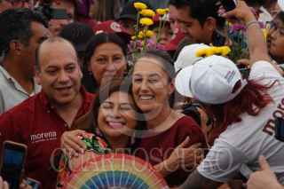 CIUDAD DE MÉXICO, 05MAYO2024.- Julio César Moreno, candidato a diputado; Clara Brugada, candidata a Jefa de Gobierno, y Claudia Sheinbaum, candidata a la presidencia por la coalición "Sigamos haciendo Historia", durante un mitin en la colonia Moctezuma, alcaldía Venustiano Carranza. FOTO: GRACIELA LÓPEZ /CUARTOSCURO.COM