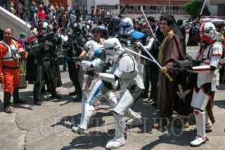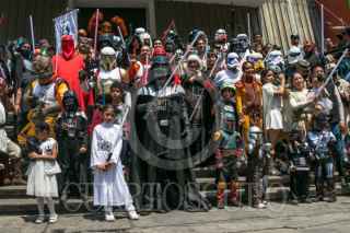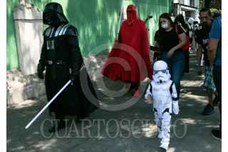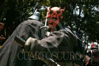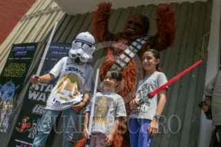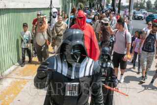 CIUDAD DE MÉXICO, 05MAYO2024.- Fans de la serie cinematográfica de Star Wars protagonizaron la Gran Marcha Imperial, como parte de los actos conmemorativos del universo creado por George Lucas en 1977. Pequeños y grandes fueron caracterizados como Dart Vader; Stormtrooper, o Darth Maul, entre otros. Esta actividad forma parte del Retro Fest CDMX, un expo para coleccionista, que se realizó en el Centro de Convenciones Churubusco. FOTO: MOISÉS PABLO/CUARTOSCURO.COM