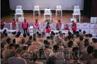 CIUDAD DE MÉXICO, 06MAYO2024.- Por primera vez personas privadas de su libertad podrán votar en elecciones 2023-2024 por candidato presidencial, jefatura de gobierno, alcaldes y diputaciones. Esta mañana personal del INE colocó Casillas especiales donde 1,867 de las cuales 134 mujeres divididos entre 7 reclusorios. En el reclusorio norte hoy 170 personas privadas de la libertad votaron. FOTO: ANDREA MURCIA /CUARTOSCURO.COM