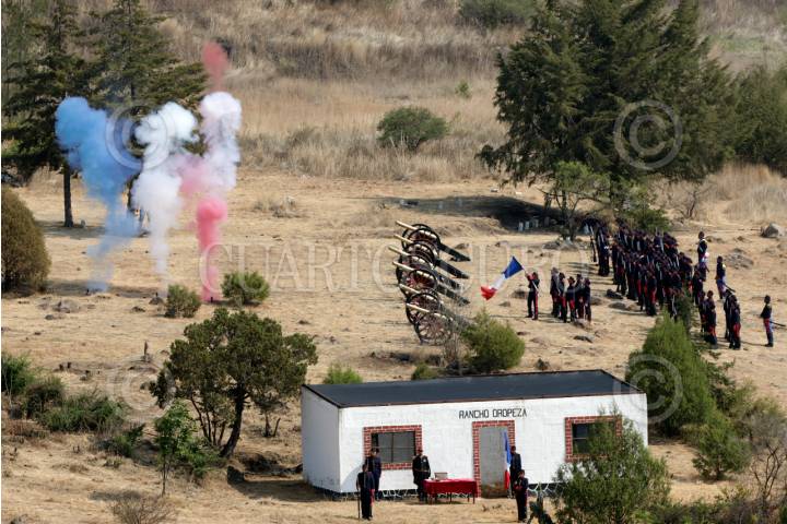 PUEBLA, PUEBLA, 06MAYO2024.- Elementos de la XXV Zona Militar realizaron la Representación de la Batalla del 5 de Mayo, por el 162 aniversario de la gesta heroica. FOTO: MIREYA NOVO/ CUARTOSCURO.COM