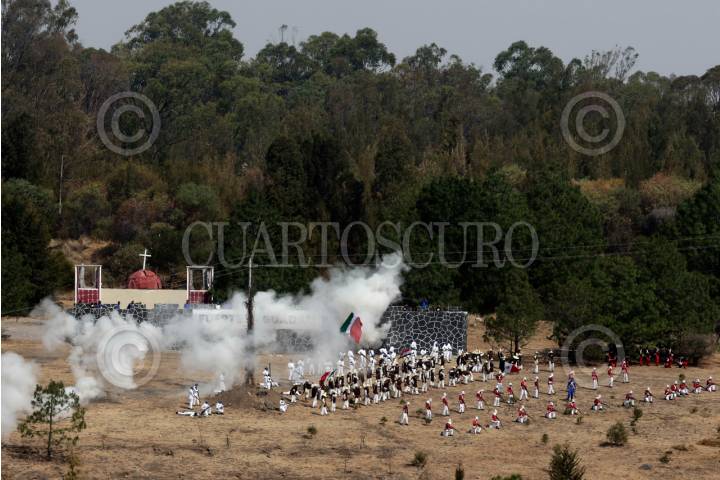PUEBLA, PUEBLA, 06MAYO2024.- Elementos de la XXV Zona Militar realizaron la Representación de la Batalla del 5 de Mayo, por el 162 aniversario de la gesta heroica. FOTO: MIREYA NOVO/ CUARTOSCURO.COM