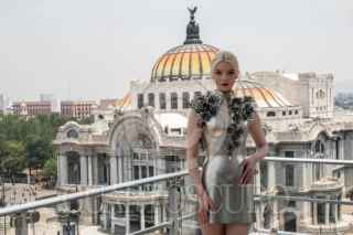 CIUDAD DE MÉXICO, 06MAYO2024.- La actriz Anya Taylor-Joy se encuentra en México para promocionar la película Furiosa. Esta cinta es parte del universo cinematográfico de Mad Max y esta dirigida por George Miller. Por la mañana la actriz argentina-inglesa poso con un vestido futurista y de fondo el Palacio de Bellas Artes. FOTO: MOISÉS PABLO/CUARTOSCURO.COM