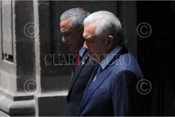 CIUDAD DE MÉXICO, 07MAYO2024. - Andrés Manuel López Obrador, presidente de México, acompañado del primer ministro de Haití, Juan Antonio Briceño. FOTO : DANIEL AUGUSTO /CUARTOSCURO.COM
