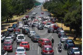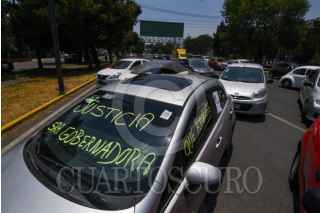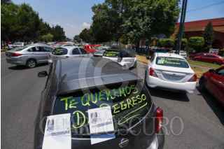 TOLUCA, ESTADO DE MÉXICO, 07MAYO2024.- Conductores de taxis por aplicación bloquearon Paseo Tollocan con dirección a la CDMX exigiendo que regrese uno de sus compañeros Ricardo Silva que desapareció el 6 de mayo en el municipio de Tultitlán, exigen la intervención de la autoridades estatales para dar con su paradero. FOTO: CRISANTA ESPINOSA AGUILAR /CUARTOSCURO.COM