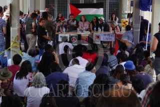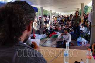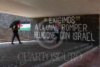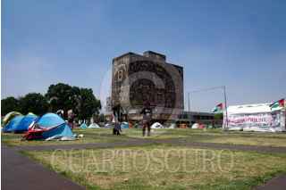 CIUDAD DE MÉXICO, 07MAYO2024.- Se llevó acabo la clase abierta por Palestina en la acampada universitaria la cual permanece frente a la Rectoría de la Universidad Autónoma de México. FOTOS: ROGELIO MORALES /CUARTOSCURO.COM