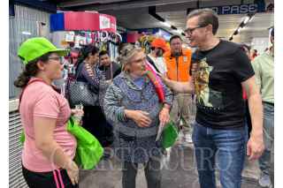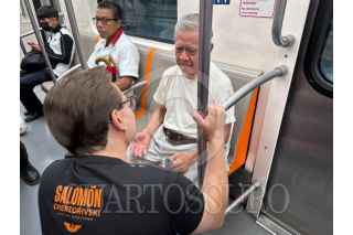 CIUDAD DE MÉXICO, 07MAYO2024.- Salomón Chertorivsky, candidato a la jefatura de gobierno por Movimiento Ciudadano realizó un recorrido con volanteo de propuestas de campaña de Pantitlán a Pino Suárez línea 1 del metro de la Ciudad de México. FOTO: ANDREA MURCIA /CUARTOSCURO.COM