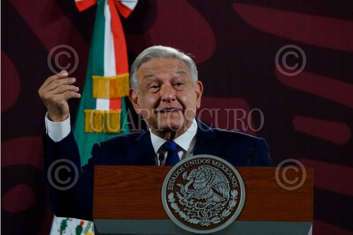 CIUDAD DE MÉXICO, 08MAYO2024.- Andrés Manuel López Obrador, presidente de México, encabezó la conferencia matutina desde Palacio Nacional en que se presentó la sección “¿Quién es quién en las mentiras de la semana?”, así como responder a preguntas de los medios de comunicación. FOTO: GALO CAÑAS/CUARTOSCURO.COM