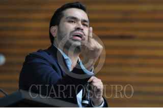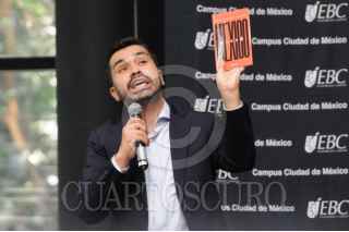 CIUDAD DE MÉXICO, 08MAYO2024. - Con su libro "México Nuevo" en las manos, Jorge Álvarez Maynez, candidato presidencial de Movimiento Ciudadano, dialoga con los estudiantes de la EBC. FOTO: DANIEL AUGUSTO /CUARTOSCURO.COM
