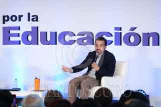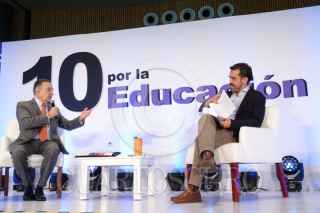 CIUDAD DE MÉXICO, 08MAYO2024.- El periodista Leonardo Kourchenko y Jorge Álvarez Máynez, candidato a la presidencia por Movimiento Ciudadano, durante el Foro 10 por la Educación, realizado en el Papalote Museo del Niño. FOTO: GRACIELA LÓPEZ /CUARTOSCURO.COM