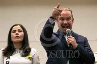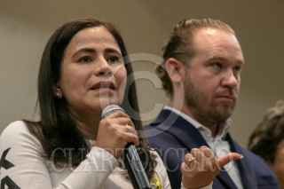 CIUDAD DE MÉXICO, 08MAYO2024.- Los candidatos de la coalición Fuerza y Corazón por México; Karen Quiroga por la alcaldía Iztapalapa, y Santiago Taboada por la la Jefatura de Gobierno, dieron conferencia de prensa por el allanamiento del domicilio de la candidata por parte de elementos de la Secretaría de Seguridad Ciudadana del día de ayer. La perredista narró que los policías entraron con lujo de violencia a su casa e intentaron detener a varios de sus colaboradores. En un video que ella misma difundió, los elementos señalaron que vecinos les habían señalado que en su en su casa se refugiaron unos hombre en moto que minutos antes dispararon con armas de fuego a dos sujetos. La aspirante a alcaldesa afirmó que trató de una intimidación con tintes político orquestada por el Jefe de Gobierno, Martí Batres, y lo señalo como responsable de cualquier agresión en su contra, esto debido a que su candidatura ha crecido entre los iztapalapenses. FOTO: MOISÉS PABLO/CUARTOSCURO.COM