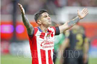 ZAPOPAN, JALISCO, 08MAYO2024.-Victor Guzmán, jugador de Chivas celebra su anotación, esto en partido correspondiente a los Cuartos de Final de Ida del Torneo Clausura 2024 de la Liga MX, en donde se enfrentan los equipos de Chivas vs Toluca, en juego que se lleva a cabo en el Estadio Akron, el marcador al final es 1-0, a favor del equipo de casa. FOTO: FERNANDO CARRANZA GARCIA / CUARTOSCURO.COM
