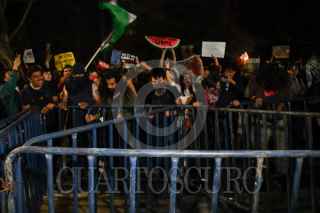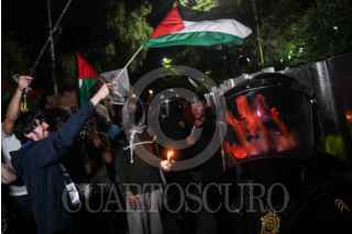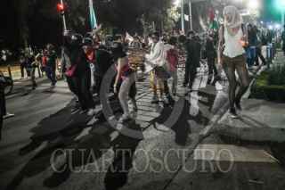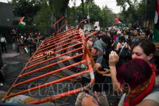 CIUDAD DE MÉXICO, 08MAYO2024.- Decenas de personas se manifestaron al exterior de la embajada de Israel en apoyo al pueblo palestino y exigieron cese al fuego en el conflicto de Hamas con Israel. Los manifestantes retiraron las vallas que resguardaban el inmueble para posteriormente ser arrastradas por paseo de la reforma hasta la altura de Fuente de Petróleos. FOTO: MARIO JASSO/CUARTOSCURO.COM
