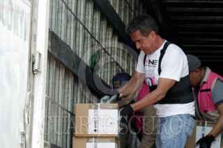 PUEBLA, PUEBLA, 09MAYO2024.- Personal de la junta distrital 12 del INE descargó la paquetería electoral y boletas para la elección federal del próximo 2 de junio.FOTO: MIREYA NOVO/ CUARTOSCURO.COM