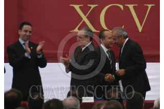 MÉXICO D.F. 24JULIO2007.-Los compositores Roberto Cantoral y Armando Manzanero, a su salida de la ceremonía del 85 Aniversario de la Escuela Libre de Derecho. FOTO: GUILLERMO PEREA/CUARTOSCURO.COM