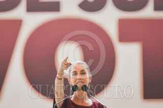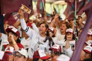 TEXCOCO, ESTADO DE MÉXICO, 11MAYO2024.- Una adulta mayor durante el mitin de Claudia Sheinbaum, candidata a la presidencia por la coalición "Sigamos Haciendo Historia (PT, PVEM y Morena), realizado en la instalaciones de la Feria del Caballo. FOTO: MARIO JASSO/CUARTOSCURO.COM