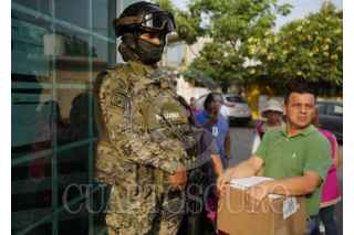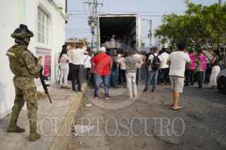 VERACRUZ, VERACRUZ, 11MAYO2024.- Un tráiler con 960,000 boletas electorales arribó al Instituto Nacional Electoral del 12 Consejo Distrital en Veracruz debido al Proceso Electoral Concurrente 2023-2024, en relación con la Distribución de la Documentación y Materiales Electorales para el Proceso Electoral Federal 2023-2024; los materiales electorales fueron escoltados por elementos de La Marina. FOTO: VICTORIA RAZO/CUARTOSCURO.COM