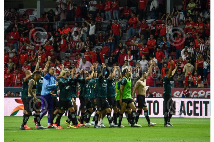 TOLUCA, ESTADO DE MÉXICO, 11MAYO2024.- Jugadores de las Chivas de Guadalajara celebran al término del partido de vuelta de Cuartos de Final del clausura 2024, el encuentro tuvo un marcador final 0-0, global 0-1, consiguiendo las Chivas de Guadalajara su pase como segundo semifinalista de la Liguilla Liga MX. FOTO: CRISANTA ESPINOSA AGUILAR /CUARTOSCURO.COM