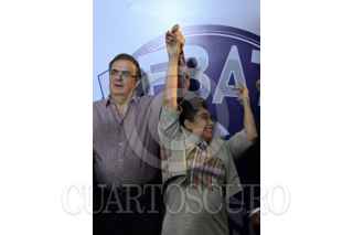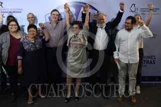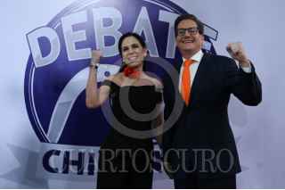 CIUDAD DE MÉXICO, 12MAYO2024.- Una persona que llegó junto a Santiago Taboada, lleva consigo una caja con la leyenda "Clara Brugada, expediente de corrupción". FOTO: DANIEL AUGUSTO/ CUARTOSCURO.COM