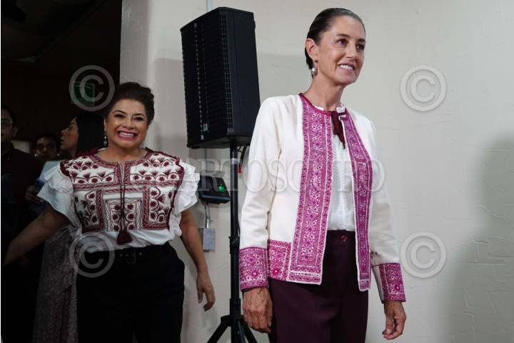 CIUDAD DE MÉXICO, 13MAYO2024.- Claudia Sheinbaum, candidata a la presidencia por la coalición "Sigamos haciendo Historia", acompañada de Clara Brugada, candidata a la Jefatura de Gobierno, y Omar García Harfuch y Ernestina Godoy, candidatos a senadores, sostuvieron una reunión Nacional de Participación Política Sindical de la F.S.T.S.E con el ex Sandor Joel Ayala Almeida, realizada en la Plaza Renato Leduc. FOTO: GRACIELA LÓPEZ/CUARTOSCURO.COM
