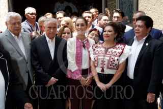 CIUDAD DE MÉXICO, 13MAYO2024.- Claudia Sheinbaum, candidata a la presidencia por la coalición "Sigamos haciendo Historia", acompañada de Clara Brugada, candidata a la Jefatura de Gobierno, y Omar García Harfuch y Ernestina Godoy, candidatos a senadores, sostuvieron una reunión Nacional de Participación Política Sindical de la F.S.T.S.E con el ex Sandor Joel Ayala Almeida, realizada en la Plaza Renato Leduc. FOTO: GRACIELA LÓPEZ/CUARTOSCURO.COM