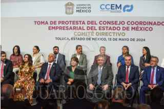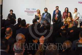 TOLUCA, ESTADO DE MÉXICO, 13MAYO2024.- Delfina Gómez Álvarez Gobernadora del Estado de México tomó protesta a los integrantes del Consejo Coordinador Empresarial del Estado de México CCEM, encabezado por Germán Jalil Hernández, durante el evento estuvieron presentes los secretarios estatales, Francisco Cervantes Díaz, Presidente Nacional del Consejo Coordinador Empresarial. FOTO: CRISANTA ESPINOSA AGUILAR /CUARTOSCURO.COM