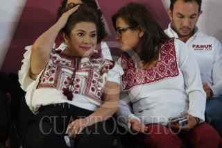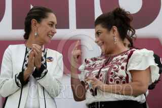 CIUDAD DE MÉXICO, 13MAYO2024.- Claudia Sheinbaum, candidata a la presidencia por la coalición "Sigamos haciendo Historia"; Clara Brugada, candidata a Jefatura de Gobierno, y Aleida Álavez, candidata a alcaldesa de Iztapalapa, durante un mitin en la Utopía Meyehualco, alcaldía Iztapalapa. FOTO: GRACIELA LÓPEZ /CUARTOSCURO.COM