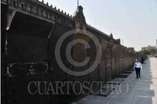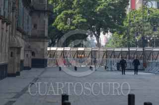 CIUDAD DE MÉXICO, 14MAYO2024.- Vallas resguardan Palacio Nacional luego de los hechos ocurridos ayer en donde presuntos estudiantes normalistas de Ayotzinapa lanzaron petardos y cohetones al inmueble que provocaron lesiones a 26 policías. FOTO: MARIO JASSO/CUARTOSCURO.COM