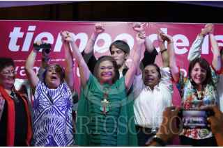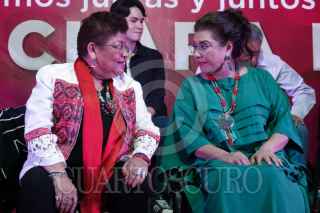 CIUDAD DE MÉXICO, 14MAYO2024.- Clara Brugada, candidata a la Jefatura de Gobierno, acompañada de Ernestina Godoy, candidata a senadora, encabezó un encuentro con integrantes de la CNPA “Es tiempo de mujeres” en Plaza 23 de Mayo, Centro Histórico. FOTO: GRACIELA LÓPEZ /CUARTOSCURO.COM