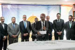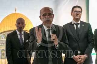 CIUDAD DE MÉXICO, 15MAYO2024.- Mohamed Saadat, embajador de Palestina en México, afirmó que "el mundo está cansado que el Estado de Israel actúe por encima de la ley", el día de hoy el pueblo palestino conmemora la Nabka (que en árabe significa “catástrofe”, y hace referencia a los 700.000 palestinos que huyeron o fueron expulsados de lo que hoy es el Estado de Israel antes y durante la guerra que rodeó su creación en 1948). El diplomático estuvo acompañado por varios embajadores de la zona. También señaló que en los últimos siete meses "Israel ha asesinado a más de 35 mil palestinos, entre ellos 15 mil niños". Y pidió a la comunidad internacional su intervención para detener el genocidio israelí en Palestina. FOTO: MOISÉS PABLO/CUARTOSCURO.COM