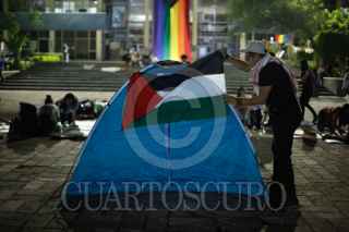 QUERÉTARO, QUERÉTARO, 16MAYO2024.- Estudiantes de la Universidad Autónoma de Querétaro instalaron un campamento de manera pacífica para protestar en contra del genocidio perpetrado por parte de Israel a Palestina. Una de las exigencias que manifiestan es la ruptura de relaciones entre el estado mexicano y el estado israelí. FOOT: CÉSAR GÓMEZ/CUARTOSCURO.COM