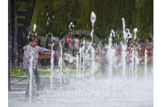 TOLUCA, ESTADO DE MÉXICO, 16MAYO2024.- Niños y jóvenes aprovechan las fuentes del Parque de la Ciencia Fundadores en Toluca para refrescarse un poco de las altas temperaturas que se registran en la capital mexiquense. FOTO: CRISANTA ESPINOSA AGUILAR /CUARTOSCURO.COM