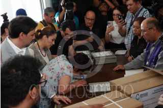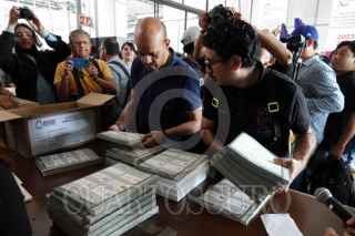 CIUDAD DE MÉXICO, 17MAYO2024.- Patricia Avedaño Durán, consejera presidenta, acompañada de los consejeros electorales Ernesto Ramos Mega, Mauricio Huesca Rodríguez, Erika Estrada Ruíz, y Bernardo Valle Monroy realizaron el banderazo de la Distribución de boletas electorales de 33 Consejos Distritalespara el proceso electoral local 2023-2024. El acto se realiz´o en los Talleres Gráficos de México. FOTO: GRACIELA LÓPEZ /CUARTOSCURO.COM