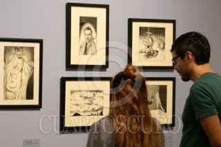 CIUDAD DE MÉXICO, 16MAYO2024.- Con la presencia de Jaqueline Valadez Pastor, viuda del artista plástico Manuel Ahumada (1956-2014), y Rafael Barajas "El Fisgón", se ofreció un recorrido por la exposición "Manuel Ahumada: Del Espacio Exterior al Circuito Interior", en el Museo del Estanquillo. La exposición consta de 164 piezas que celebran la dan fe de la extensa trayectoria de uno de los artistas más atípicos de México, que abarcó diferentes géneros como historieta, caricatura, pintura al óleo y arte objeto. FOTO: MOISÉS PABLO/CUARTOSCURO.COM