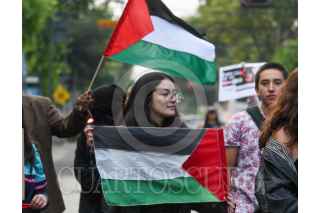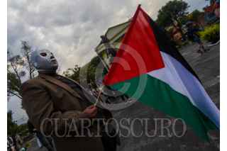 TOLUCA, ESTADO DE MÉXICO, 17MAYO2024.- Activistas de diversos colectivos se unieron en el Parque Simón Bolívar en una Acción por Palestina en Toluca, haciendo un llamado para romper relaciones con israel y paren los ataques a los palestinos. FOTO: CRISANTA ESPINOSA AGUILAR /CUARTOSCURO.COM