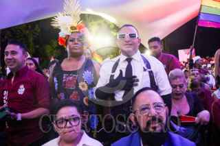 CIUDAD DE MÉXICO. 17MAYO2024.- la candidata de la Coalición Sigamos Haciendo Historia, clara Brugada Molina; se reunió con la comunidad de la diversidad sexual y encabezó el encuentro “Ciudad de Derechos y Libertades Donde no Quepa el Odio”. Teatro Popular “Hermanos Soler”, de la alcaldía Benito Juárez. FOTO: VICTORIA VALTIERRA/CUARTOSCURO.COM